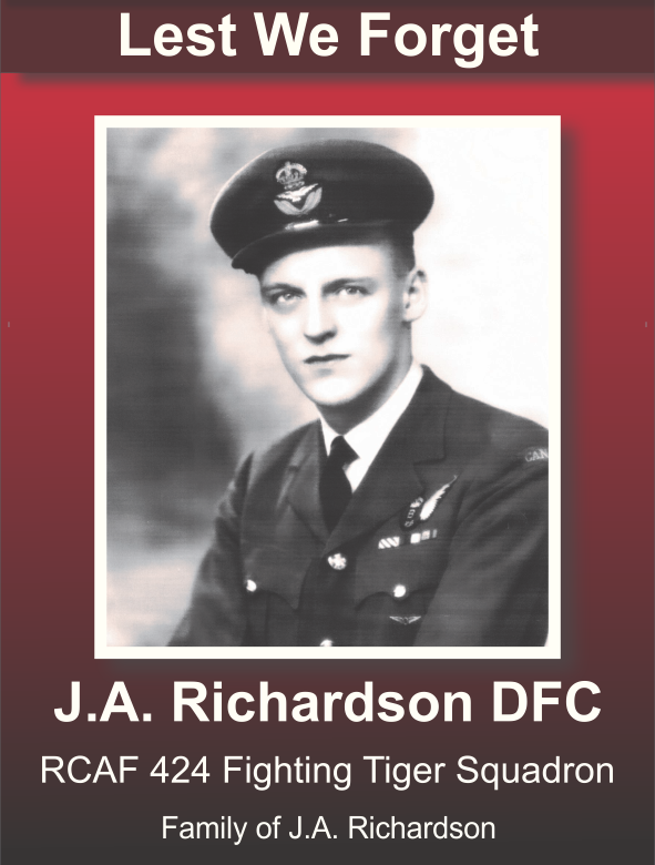 John Andrew Richardson was born in St. Marys in 1919 and served Canada during the Second World War with the Royal Canadian Air Force. He enlisted in March 1942 and was later posted overseas with 424 Squadron, a Royal Canadian Air Force bomber squadron.